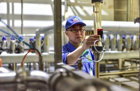 在李新海工作的啤酒过滤工段,机械自动化程度已经非常高,两个高大的过滤机,有上百根管道环绕,一个过滤机通过除去酵母等负责酒液的清亮,而另一个去除其他杂质来保持啤酒的稳定性。