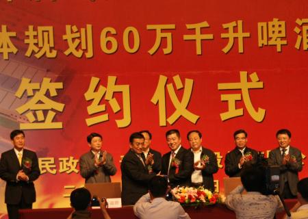 青岛啤酒武威有限责任公司搬迁扩建总体规 划60万千升啤酒生产项目签约仪式