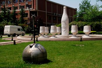 青啤员工用废旧机器零件自制的环保作品-人与自然和谐