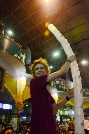 记者昨天中午在青啤大世界里一楼见到了仪先生,穿戴时尚的他来青岛干理发师三年了,以前因为工作太忙,一直没有来得及参加青岛啤酒节,一直觉得很遗憾。