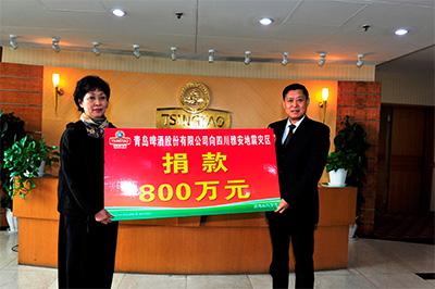 青岛啤酒公司捐助800万元支援四川雅安抗震救灾