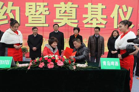 青啤公司副总裁、渭南公司董事长张安文与渭南经济开发区管委会主任李玲签约