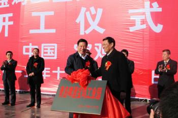青啤公司副总裁刘英弟与宝鸡市委书记唐俊昌一起为“青岛啤酒宝鸡工业园”揭牌