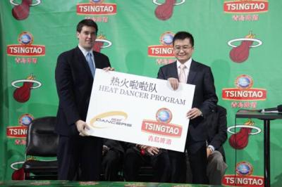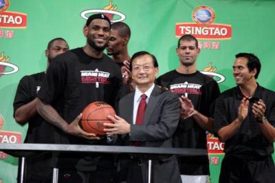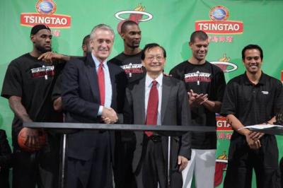 美国当地时间12月20日中午12:30(北京时间12月21日凌晨1:30),青岛啤酒迈阿密热火队战略合作签约仪式在美国举行,迈阿密热火队老板阿里森、总裁莱利,热火三巨头小皇帝詹姆斯、闪电侠韦德、龙王波什以及著名球星巴蒂尔齐聚迈阿密美航球馆,青岛啤酒股份有限公司总裁孙明波出席了本次签约仪式。作为美国职业篮球联赛的夺冠热门球队,此次战略合作,是青岛啤酒继签约奥运会、与NBA合作、签约2012伦敦奥运中国冠军军团之后的又一力作,推动了与全球共享体育的激情与快乐。