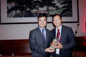 美国驻华大使骆家辉与青啤公司总裁孙明波合影