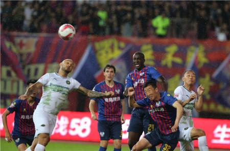 最强外援24号亚亚-图雷本场迎来加盟球队后的首秀。比赛开场仅仅两分钟,图雷就制造了一个进球。中场反抢之后直塞给高翔,后者射门虽然被绿城门将邓小飞扑出,但刘龙跟上补射得分,黄海青港队取得梦幻开局。比赛开始前,天空一直飘落着小雨,比赛开始后,雨势依然不减,雨水浸湿了球员胸前印有“青岛啤酒”字样的球衣,但大伙的脸上没有丝毫的疲惫。