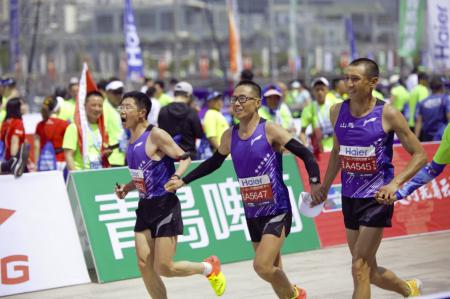 开放、现代、活力、时尚的青岛,以奔跑之名向世界发起青春邀约,2019青岛马拉松5月4日上午在青岛五四广场鸣枪开跑,25000名跑者在这个五四运动100周年的特殊日子里,用激情与活力的奔跑共同纪念。最终,来自肯尼亚的Biegon选手以2:22:17的成绩获得男子全程的冠军,来自埃塞俄比亚的Weyesa选手以2:43:42的成绩获得女子全程的冠军;钱鼎彬和孔洁则分别获得了赛事中国籍选手男子组和女子组的冠军。优胜选手在获颁优胜奖杯的同时,还捧起了装满新鲜青岛啤酒的特大“冠军杯”。这也是青岛啤酒连续第三年携手青岛马拉松,以奔跑之名,向世界出发。