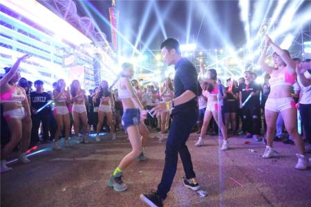 其实,主舞台区从下午就一直在躁动,各种酷炫表演,让现场嗨不停。轻松领跑五公里,陈秋实、蔡照现场互动,引起粉丝一阵阵尖叫;另一组人气明星,1931女子天团成员在电音舞台为大家带来精彩的表演;青啤啦啦宝贝、炫舞团的动感舞蹈、台下斗舞,把现场气氛屡屡推向高潮。