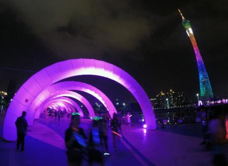 当晚,全面升级的热波电跑十大荧光装置闪耀跑道,酷炫的电音舞台持续激情,人气明星与6000夜跑潮人嗨爆全场,与海心沙隔江相望的小蛮腰也穿上了绚丽的外衣……持续不断的亮点,让5月的羊城更加动感鲜活。