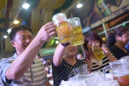 青岛啤酒节青啤奥古特大棚欢乐的游客