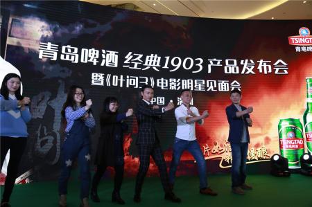 时隔五年,经典影片《叶问3》卷土重来,3月4日在全国正式上映。影片主角之一张晋在电影中与功夫巨星甄子丹的对打,再次展现了他深厚的武术功底。没有慢功夫,哪有好功底,经典好酒致敬经典影片,4日晚,青岛啤酒【经典1903】产品发布会暨《叶问3》电影明星见面会在深圳南山区欢乐海岸举行,张晋现场与影迷互动举杯,称练功夫和酿啤酒一样,欲速则不达,好的啤酒品牌,一定是在配料和时间的精准上用了心。