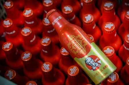 据悉,青岛啤酒“鸿运当头闻鸡起舞”KFC定制版的产品,已在近日经生产下线,运往肯德基各合作门店。这款定制版鸿运当头,保留了原有吉祥喜庆的中国红底色与中国传统的祥云与福字图案,特别为鸡年春节增加了鎏金“闻鸡起舞”书法字样,再融入肯德基产品元素,为新春菜单再添喜庆、创意的定制化新品,成为鸡年不可错过的尝鲜选择。