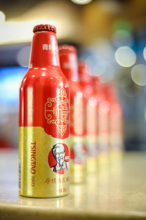 春节期间(2017年1月16日-2月12日),山东与河南两省大部分肯德基餐厅将推出肯德基“鸿运当头”啤酒欢聚桶,其中会包含两瓶青岛啤酒“鸿运当头” 闻鸡起舞KFC定制版啤酒,让成年消费者有更多选择。消费者也可以通过单点,来品尝这款自带节日属性的定制版青岛啤酒,总计12万瓶,售完为止。