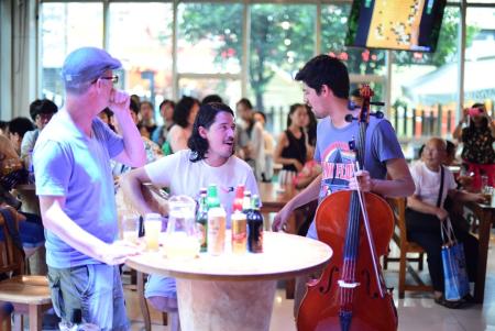 作为啤酒节前夕的热身项目,一场别开生面的啤酒音乐快闪秀在青岛啤酒博物馆TSINGTAO1903旗舰餐吧举行。参加欧盟青年音乐节的墨西哥索纳塔组合,与北大弦乐四重奏、虎连二重奏,在青岛啤酒的激情催化下,开启了一场啤酒+音乐的“斗乐”盛会,波兰佛罗茨瓦夫大学合唱团的加入,引发了一场音乐与啤酒的快闪秀,这让现场游客嗨爆。