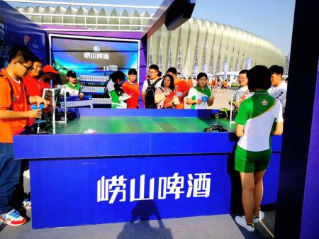 2017年,崂山啤酒作为中超联赛的官方合作伙伴,体育IP再次升级,赛场内外为广大球迷朋友带来超级足球狂欢体验。在中超嘉年华现场崂山啤酒活动区设置了与中超球星的合影台,知名球星卡通形象组合,吸引了众多球迷纷纷拍照留念;无线遥控的足球游戏,让足球爱好者们体验了一场激烈的桌上机器人足球赛;在线上有“爱崂山、爱足球、赢中超门票”的活动,每场球赛之前都会推出一款足球游戏,参与游戏和互动可以免费赢取中超球票。