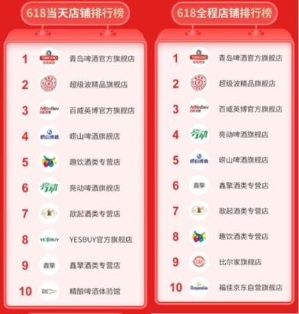 在2019年京东618啤酒类店铺TOP10排行榜中,青岛啤酒官方旗舰店一炮双响,位列“618当天店铺排行榜”第一、“618全程店铺排行榜”第一,创造了自2014年开店以来最佳战绩,在京东平台年中大促中勇夺冠军。