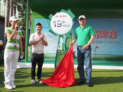 青岛啤酒营销总裁王瑞永、奥运冠军陈一冰为“青岛啤酒19洞”揭幕