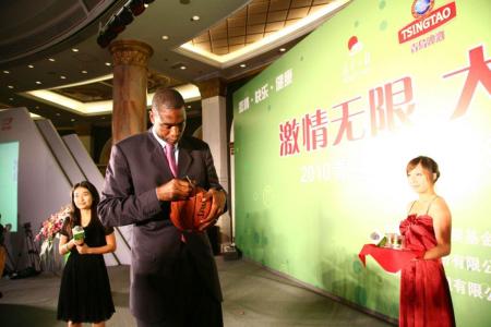 14日,“激情无限 大爱无疆”2010青岛啤酒•QSL慈善盛典在青岛温馨举办。青岛啤酒股份有限公司董事长金志国、中国青少年发展基金会副秘书长汪敏、QSL体育联盟有限公司董事长黄健华、青岛啤酒股份有限公司党委书记、副董事长王帆、副总裁刘英弟、营销总裁严旭、知名NBA球星穆托姆博、中国篮坛“女巨人”郑海霞、著名歌手刀郎、名模马艳丽、本山传媒王小虎、张可等体育界、文艺界人士共同出席了这场慈善盛宴。