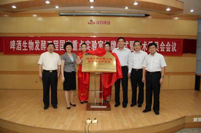 2010年12月,“啤酒生物发酵工程国家重点实验室”获得国家科技部审批,成为生物发酵领域唯一一家国家重点实验室,是提升中国啤酒行业整体竞争实力的里程碑事件。2011年11月科技部在北京正式举行了授牌仪式。现在,“啤酒生物发酵工程国家重点实验室”的揭牌成立,则标志着啤酒行业科技与产业的融合迈上了一个崭新的台阶,进一步彰显青岛啤酒“技术创新是第一生产力”的核心价值观。
